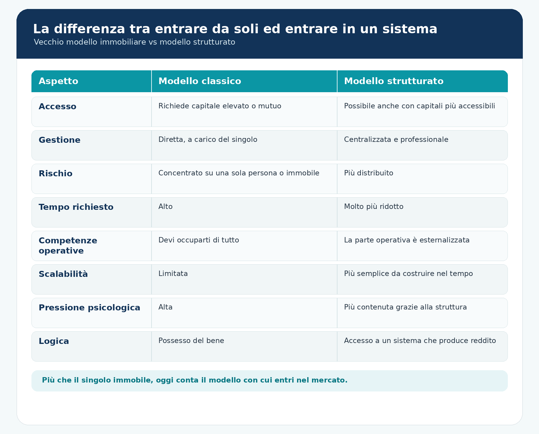 Per anni il mercato immobiliare ha premiato chi aveva capitale, conoscenze e struttura, lasciando fuori tutti gli altri.